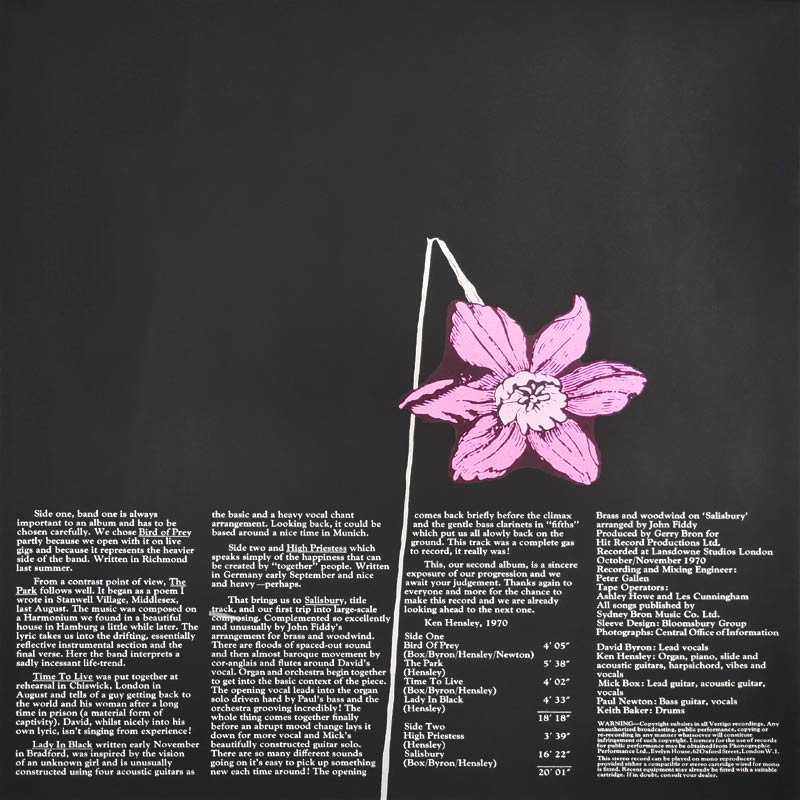 In all of the songs, which are very different from each other, the quintet perfected their mix of heavy metal power, complex progressive rock and acoustic ballads. The album concludes with the central masterpiece Salisbury, a 16-minute complex composition that artfully varies between classical, prog and hard rock, enhanced by the use of a 24-piece brass section conducted by John Fiddy. The album was revolutionary for the 1970s and was completely underestimated and misunderstood by critics. The songs are innovative, thoughtful, full of imagination and passion, and without question, the LP is a masterpiece of progressive rock.