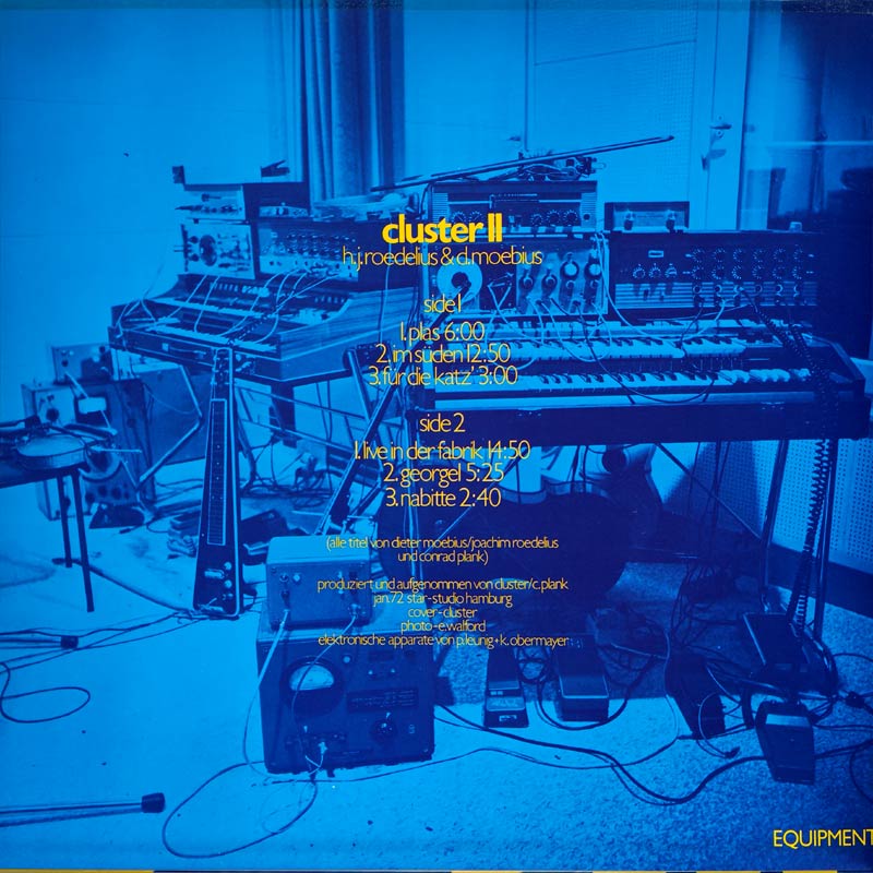 Today, Cluster is considered one of the most important international protagonists of the electronic avantgarde, laying the foundations for electronic pop music. With albums that were so far ahead of their time that they still sound avantgarde today. Cluster II was not very successful commercially, but is now considered a classic and is celebrated by renowned music journalist Julian Cope in his book Krautrock Sampler (Head Heritage) as one of the most important albums.