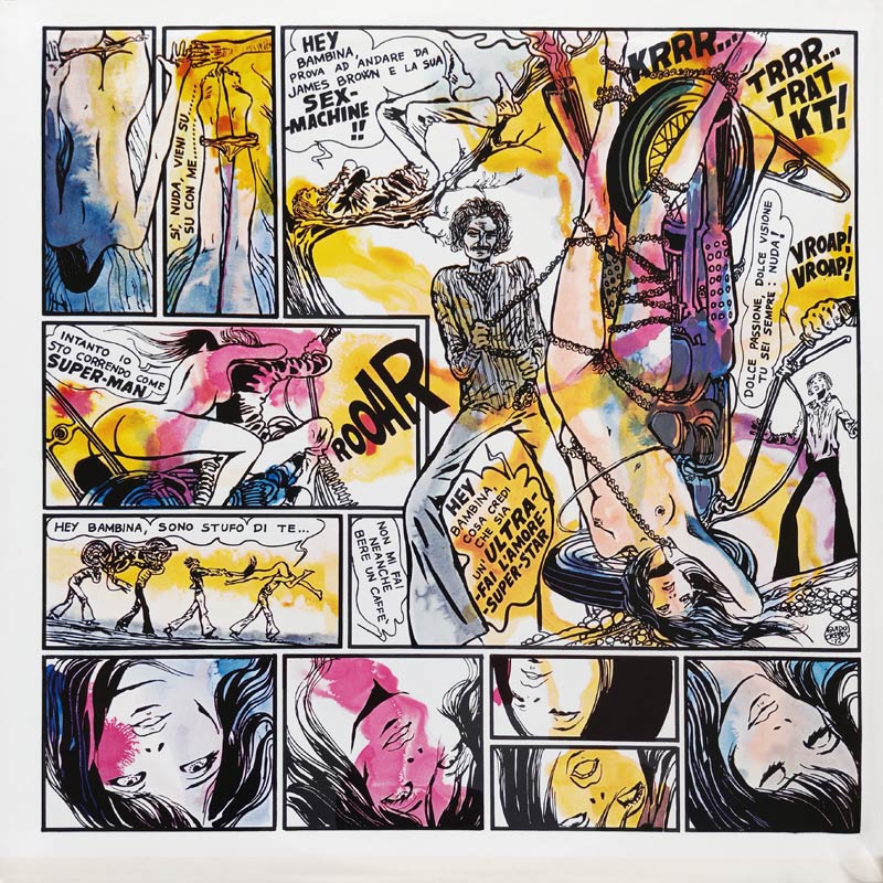 In 1971, the band Gleemen changed their name to Garybaldi. The line-up remained the same, as did the unusually guitar-heavy hard prog sound for Italy, with Bambi Fossati's wild, Hendrix-inspired guitar playing. The difference was a generally more progressive sound due to more complex compositions and the more frequent use of keyboards by keyboardist Lio Marchi. The solid rhythm section continued to consist of Angelo Traverso (b) and Maurizio Cassinelli (dr), holding the whole thing together well, so that the guitar and keyboard parts could shine. In July 1972, they recorded the first of two albums under their new name. The now significantly more progressive and diverse sound was particularly evident in the long 21-minute track on side 2. Overall, it was a mixture of progressive, partly bluesy rock and guitar- and keyboard-heavy, melodic and romantic songs. The LP was then released at the end of the year in a spectacular triple gatefold cover by the later Italian comic star Guido Crepax. The outer cover shows a beautiful, huge naked woman surrounded by animals such as elephants, rhinos, monkeys, big cats and crocodiles, who use her as a playground. The three inner panels feature a sexy comic strip. A rare and sought-after gem of Italian prog, both acoustically and visually.