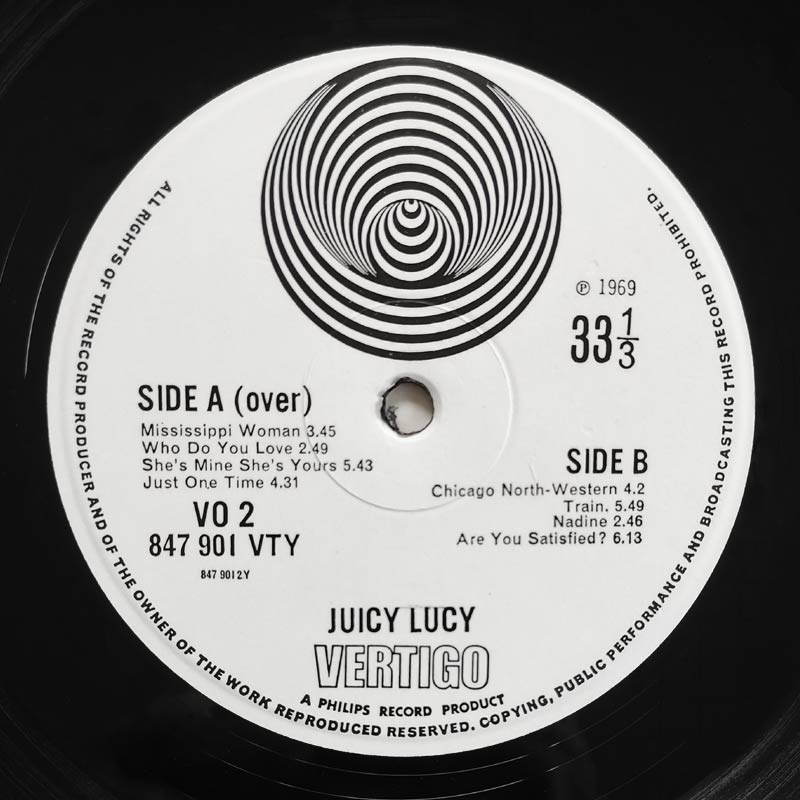 After the US psychedelic band The Misunderstood, which had moved to London years earlier on the advice of John Peel, broke up after two unsuccessful singles, US guitarist Glenn Campbell decided to continue under a different name together with Brit Chris Mercer (sax, p, org). The band, newly formed in the autumn of 1969, consisted of experienced rock musicians from the London beat and rock scene, such as singer Ray Owen, guitarist Neil Hubbard, bassist Keith Ellis and Pete Dobson (dr, perc). The sextet called themselves Juicy Lucy after a character from the novel Virgin Soldiers by Leslie Thomas. Thanks to excellent references, they signed a record deal with Philips' progressive label Vertigo immediately after their formation and recorded their eponymous first LP at London's I.B.C. Studios. It was produced by Gerry Bron (Uriah Heep) and Nigel Thomas, who, together with Glenn Campbell, was also responsible for the striking cover design featuring burlesque dancer Zelda Plum lying on her back covered in fruit.
