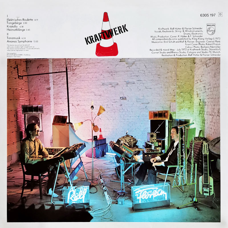 Emerging from the band Organisation, the legendary electronic pioneers from Düsseldorf, Ralf Hütter and Florian Schneider-Esleben (both voc, keyb, str, ww, dr, elec), played as a trio with a drummer as Kraftwerk from 1970 onwards. After two LP releases featuring experimental Krautrock, Kraftwerk as a duo began to sound like the later world-famous Kraftwerk on their third album. This LP is commonly regarded as a bridge or link between their early experiments with amplified acoustic instruments and their subsequent song-oriented commercial electropop. Ralf & Florian was recorded in parts in July 1973 in their Kling-Klang Studio, which had been founded in 1970. Further recordings were made in Cologne and Munich, all with the assistance of mastermind Conny Plank. The LP was released at the end of the year, again on the major label Philips. Some of the first pressings even included a poster with the so-called Musicomix.